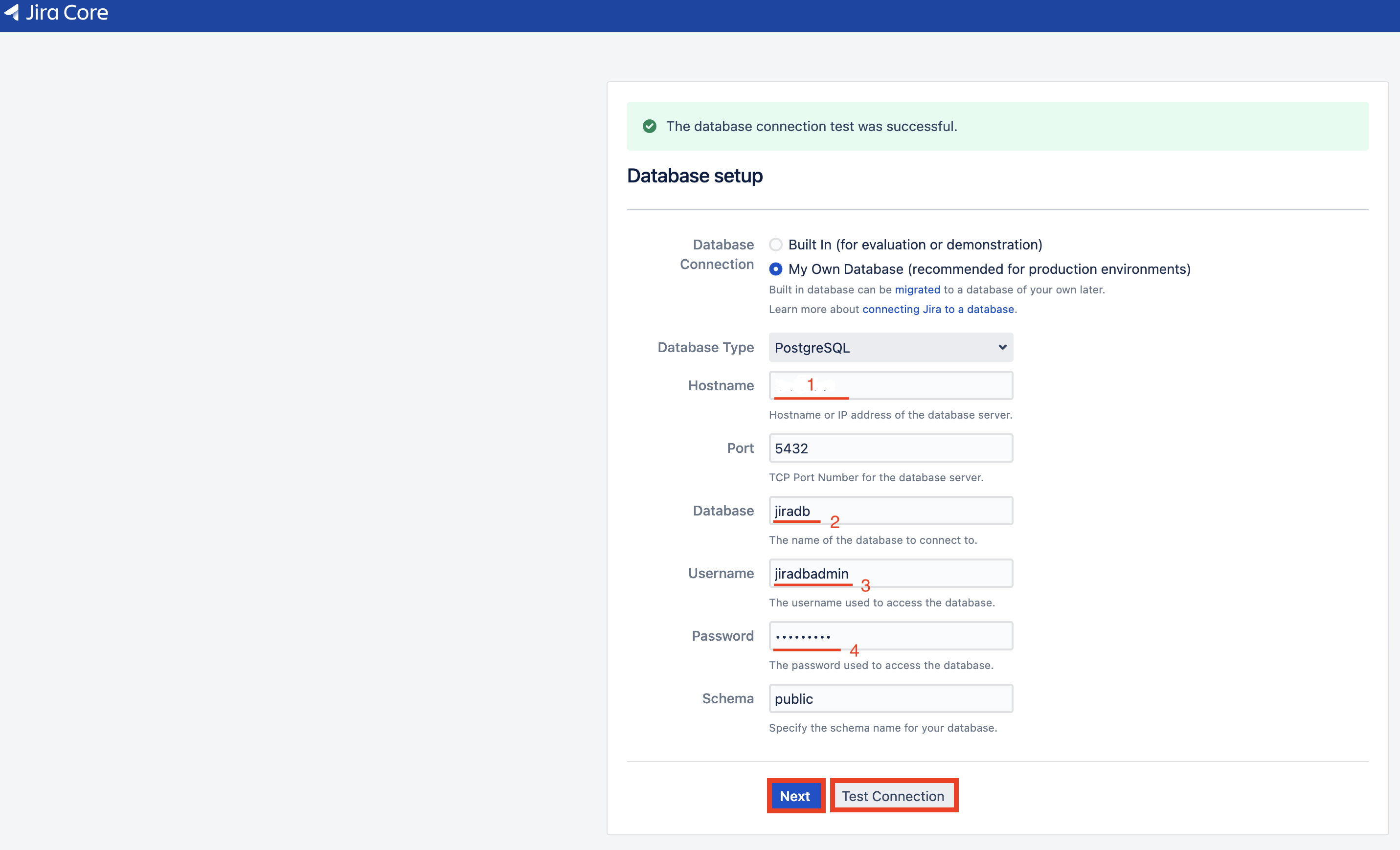 Test Connection 성공 후 Next를 누릅니다. (스키마는 반드시 public이어야 합니다.)