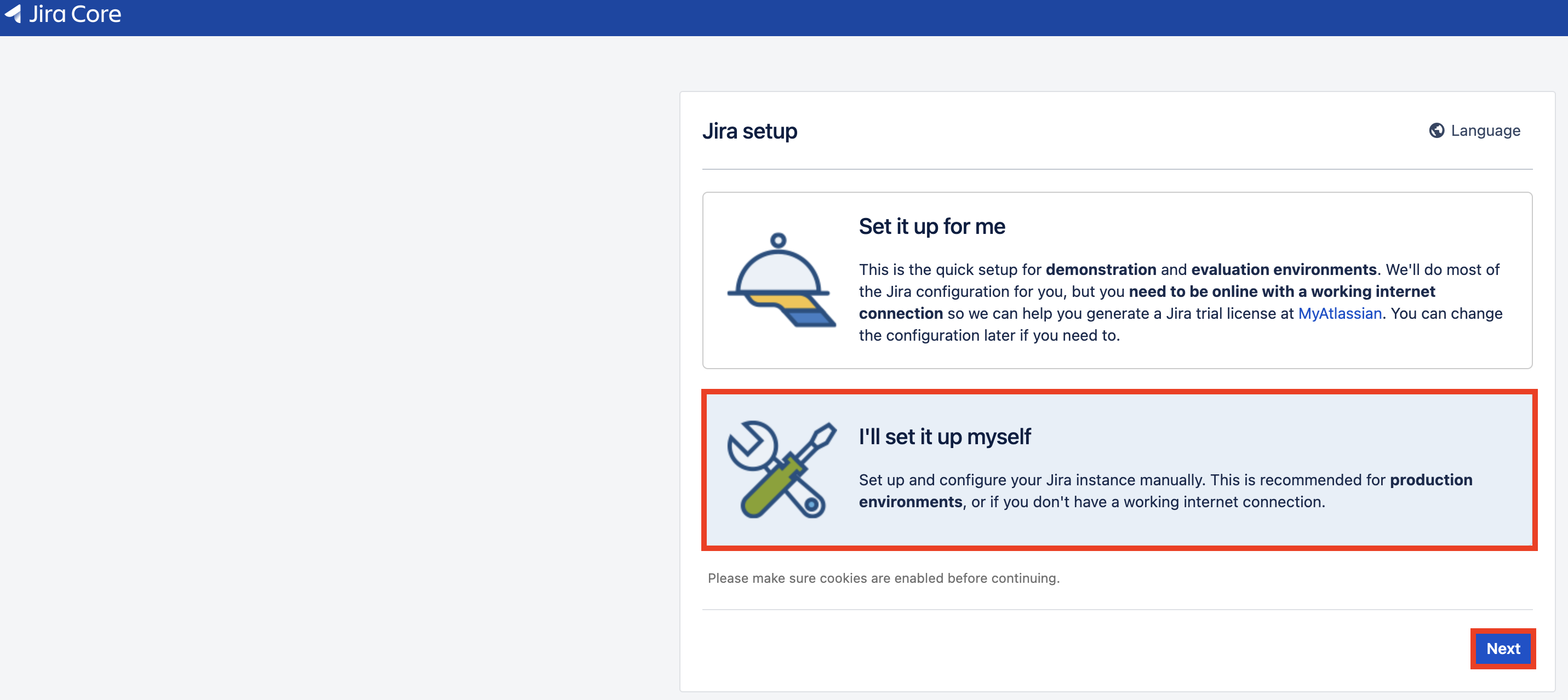 1. 셋업 방식 선택: I'll set it up myself 선택